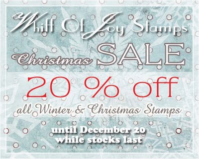 Oh and just to let you know Katharina is having a huge sale! She wants to thank all her custmomers who have helped make Whiff of Joy such a success. Now's the time to get all those gorgeous Whiff of Joy stamps you've been longing for but don't wait to long I have a feeling the stamps will be flying off the shelves!