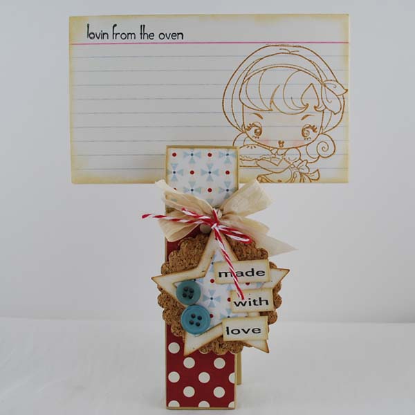 I used the new Sweet Heart Stick pins from The Greeting Farm to embellish the ribbon but it was pink so I air brushed it red with my Copic R46.
