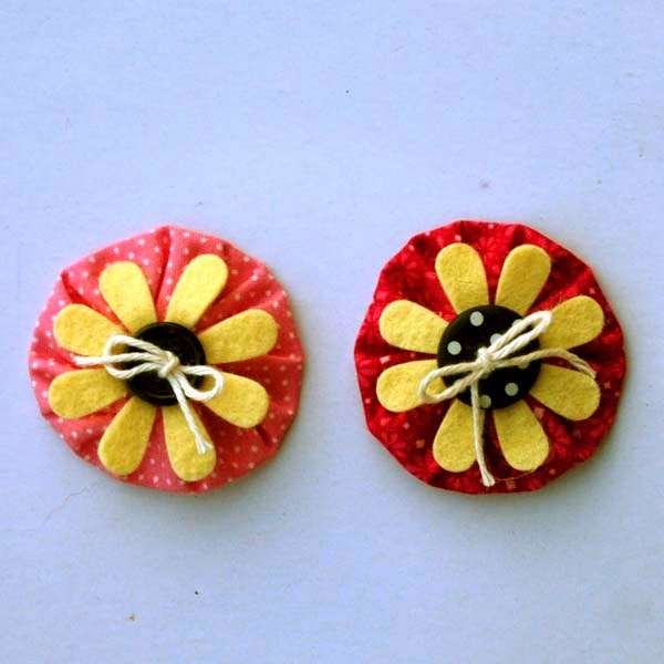 A while ago I purchased Yo Yo's from Etsy. I know they are fairly simple to make but I figured by the time I buy a bunch of bits of material then cut out the circles (I would of die cut them) then fold under the edges and stitch and pull them together it would be much easier to just click "buy now" and wait. :) Then poof they appear in my mailbox. Meanwhile I also purchased this adorable daisy die and cut some felt flowers. A little hot glue, some twine bows through the buttons and ta da....yo yo daisy's.